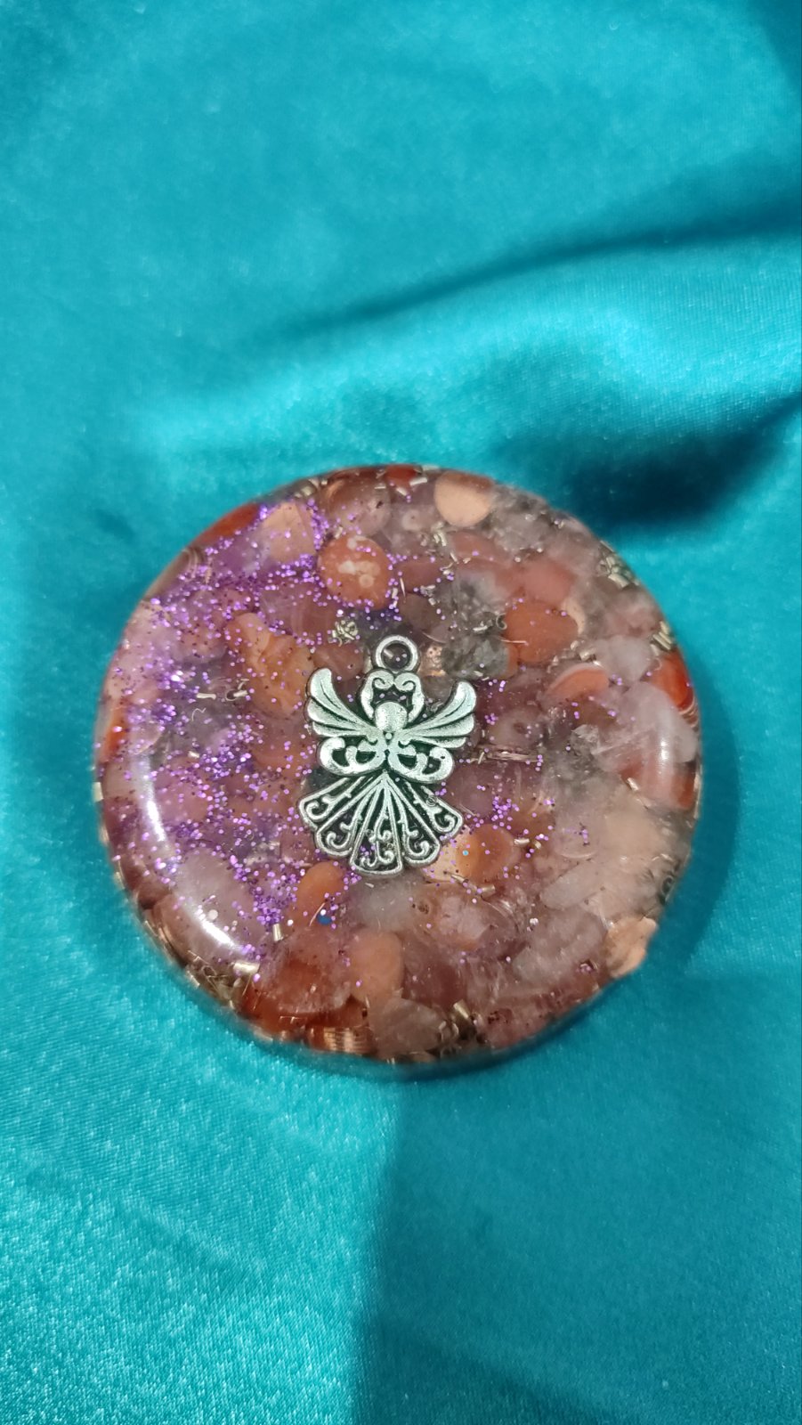 Anđeo raširenih krila predstavlja simbol zaštite, vođstva, utehe i prisustva više svetlosti u životu. Kada je ovaj simbol spojen sa energijom karneola, dobija dodatnu notu snage, hrabrosti i aktivne podrške.